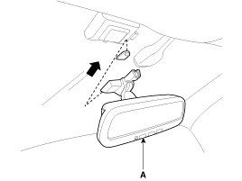 4. Push the ECM mirror base up to remove the ECM mirror assembly (A).