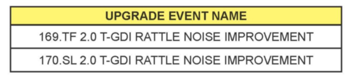 This bulletin provides information related to an ECM software upgrade or some 2011-2012MY Optima (TF) / Sportage (SL) 2.0L T-GDI vehicles that may experience Exhaust Wastegate Actuator (EWGA) rattle noise for approximately 10-15 seconds during cold start. This noise is caused by vibration of the Wastegate Valve & Rod resulting from exhaust gas flow.