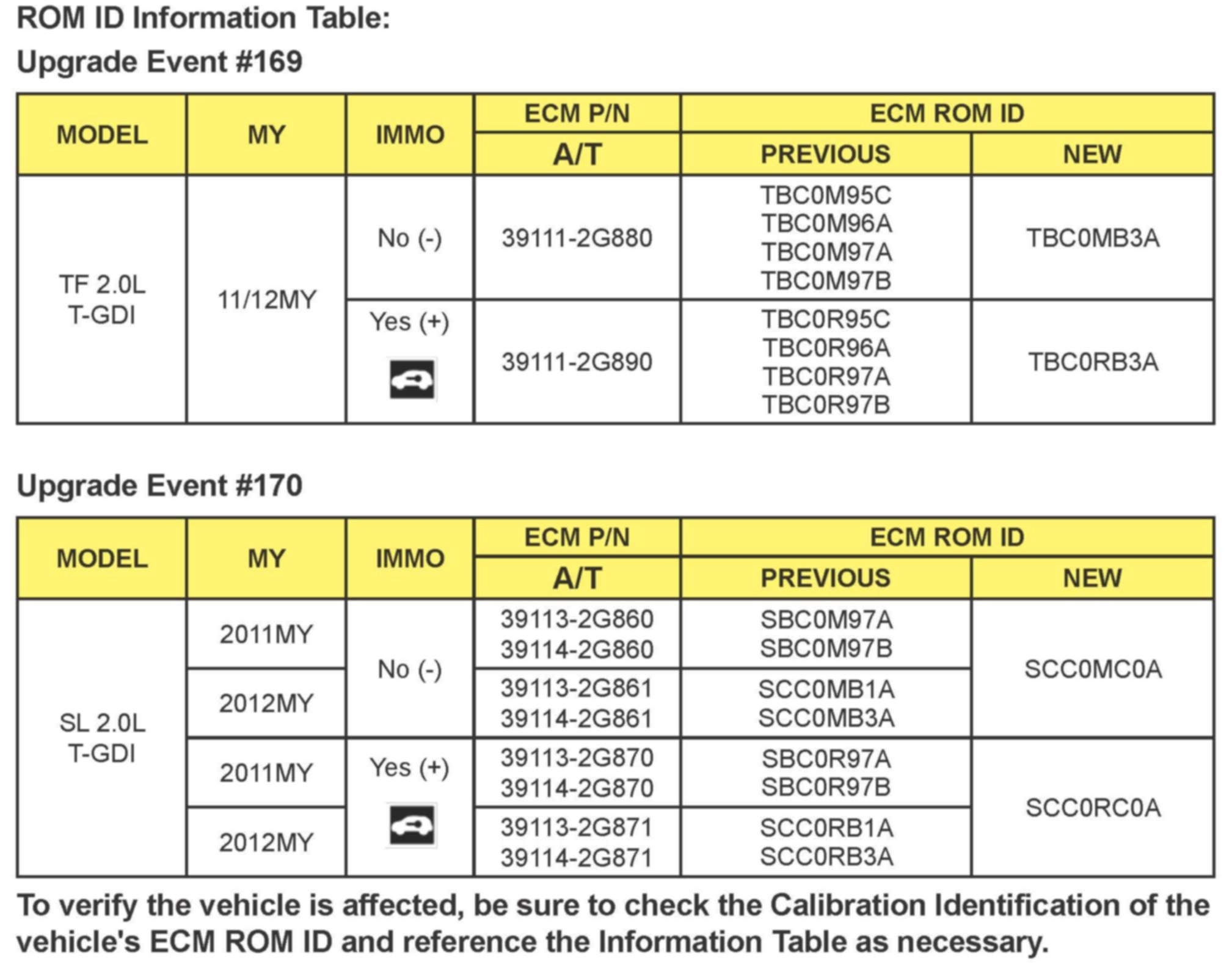 For confirmation that the latest reflash has been done to a vehicle you are working on verify ROM ID using the tables in this TSB.