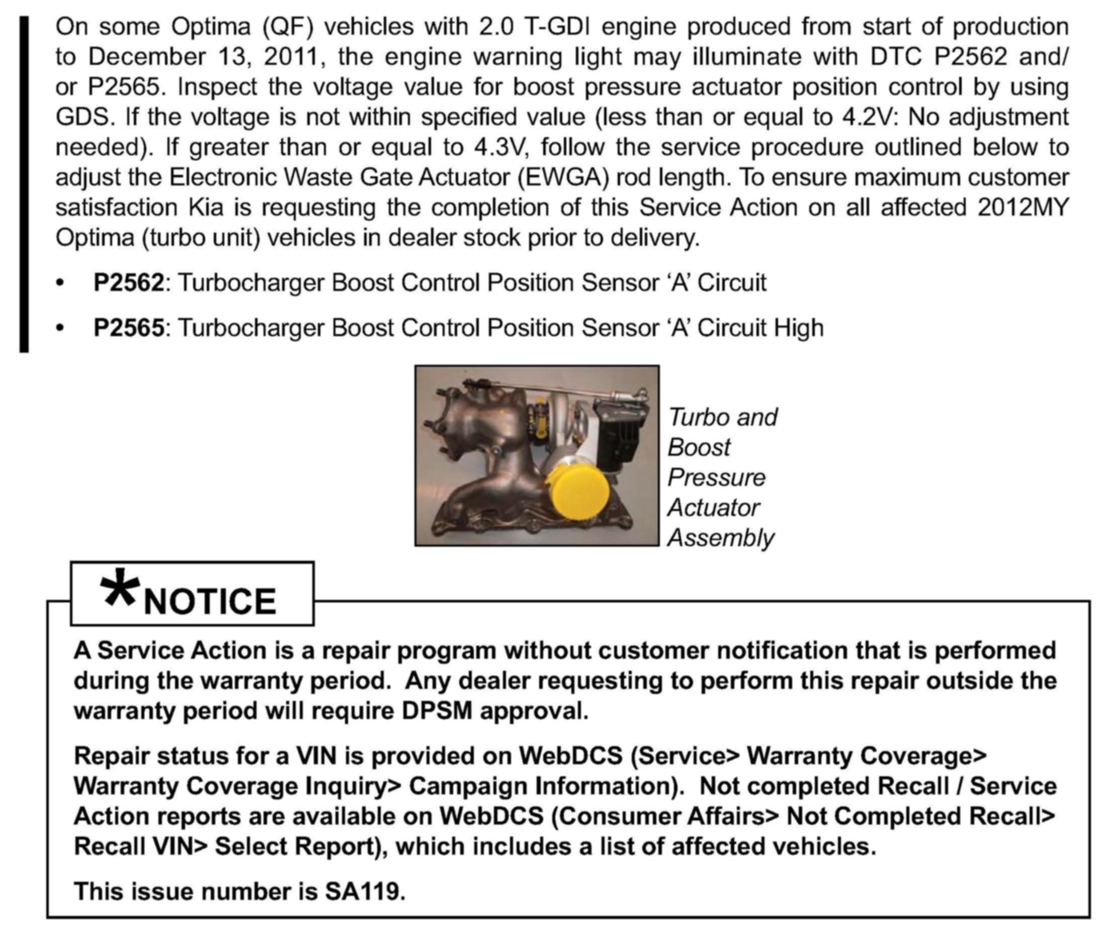Campaign SA119 - Inspect/Adjust Wastegate Actuator
