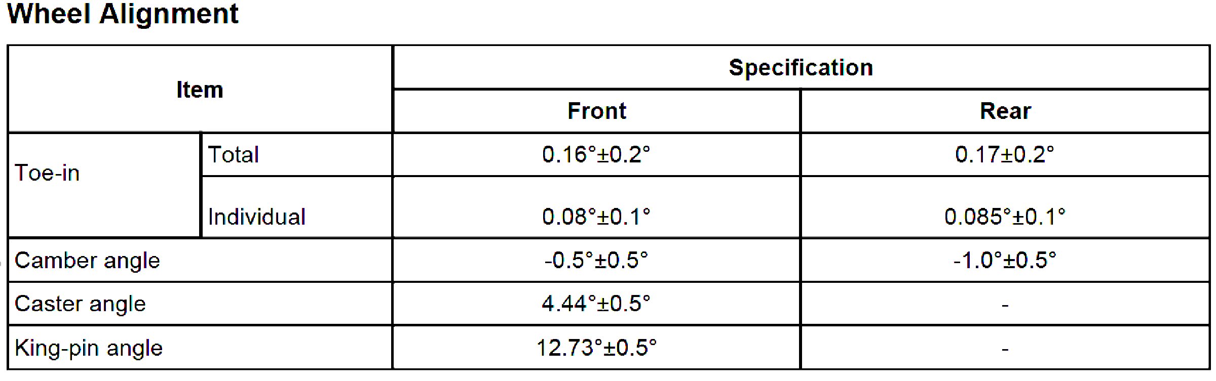 Wheel Alignment Specifications