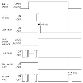 *1 : Lock : Driver Door Unlock Switch or Assist Door Unlock Switch or Rear Right Driver Unlock Switch = LOCK