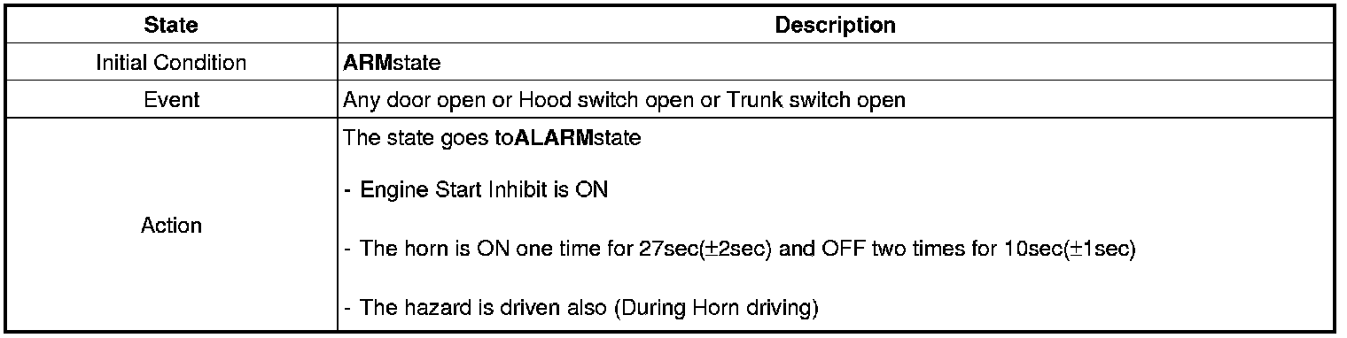 (4Doors Locked) & (4Door Not Close ON->OFF) & (Trunk Open Switch=ON) or (Hood Switch=ON)