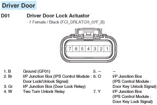D01 Driver Door Lock Actuator: