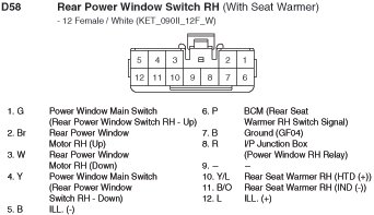 D58 Rear Power Window Switch RH (With Seat Warmer):
