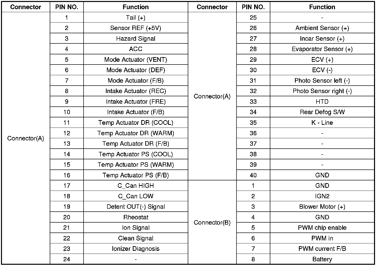 Connector pin function