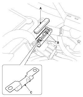 6. Remove the installation bolts (B), than remove the DC fuse (C) from the HPCU.