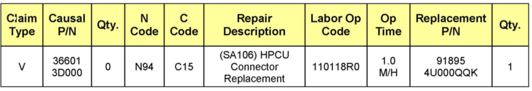 VIN inquiry data for this repair is provided for tracking purposes only. Kia retailers should reference SA106 when accessing the WebDCS system.