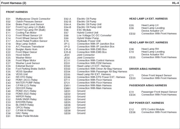 Front Harness Index: