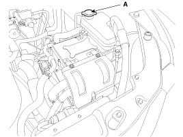 2. Remove the inverter reservoir cap (A) to help drain the coolant faster.