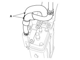 2. Disconnect the ventilation hose (A) and then remove the nuts (B).