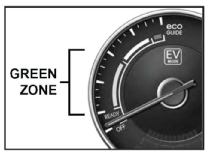 ^ Monitor the ecoGuide indicator. This gauge offers the best feedback to drivers about their efficiency, especially during acceleration. Keep the indicator in the green zone as much as possible.