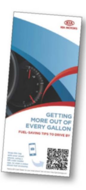 ^ The Kia Fuel economy brochure, "Getting More out of Every Gallon" (pictured above) P/N UN120-KU-002, available for order in packs of 50 through Archway.