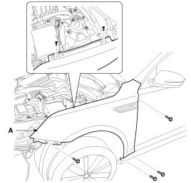 5. After loosening the fender mounting bolts, then remove the fender (A).