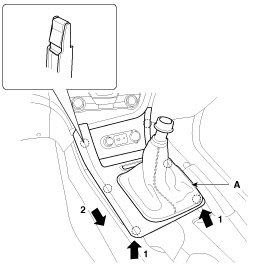 1. Remove the gear knob (A).