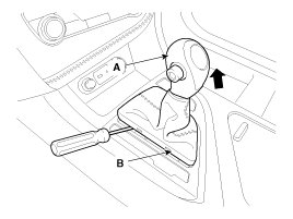 1. Using a screwdriver or remover, remove the gear boots (B) and gear knob (A).
