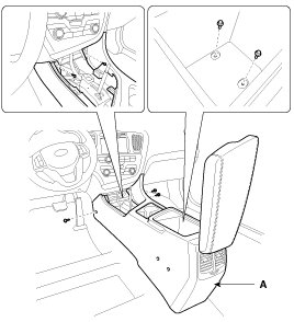 6. After loosening the mounting screws and bolts, then remove the floor console assembly (A).