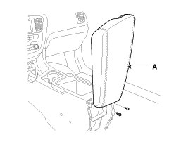 2. Using a screwdriver or remover, remove the floor console upper cover (A).