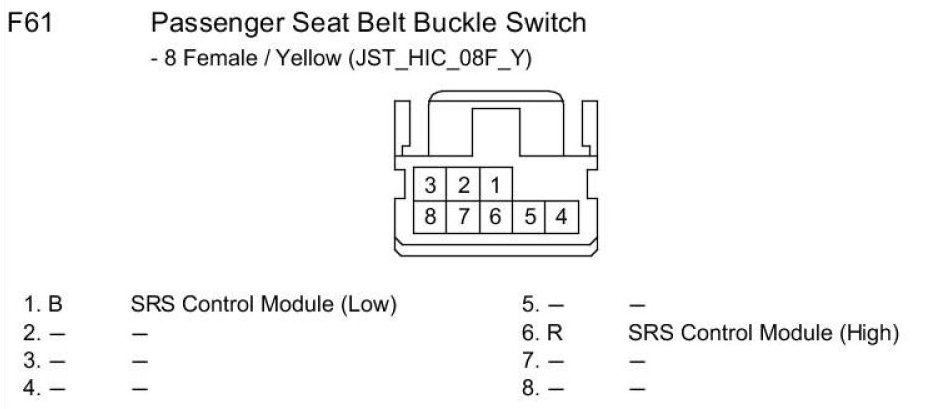 F61 Passenger Seat Belt Buckle Switch: