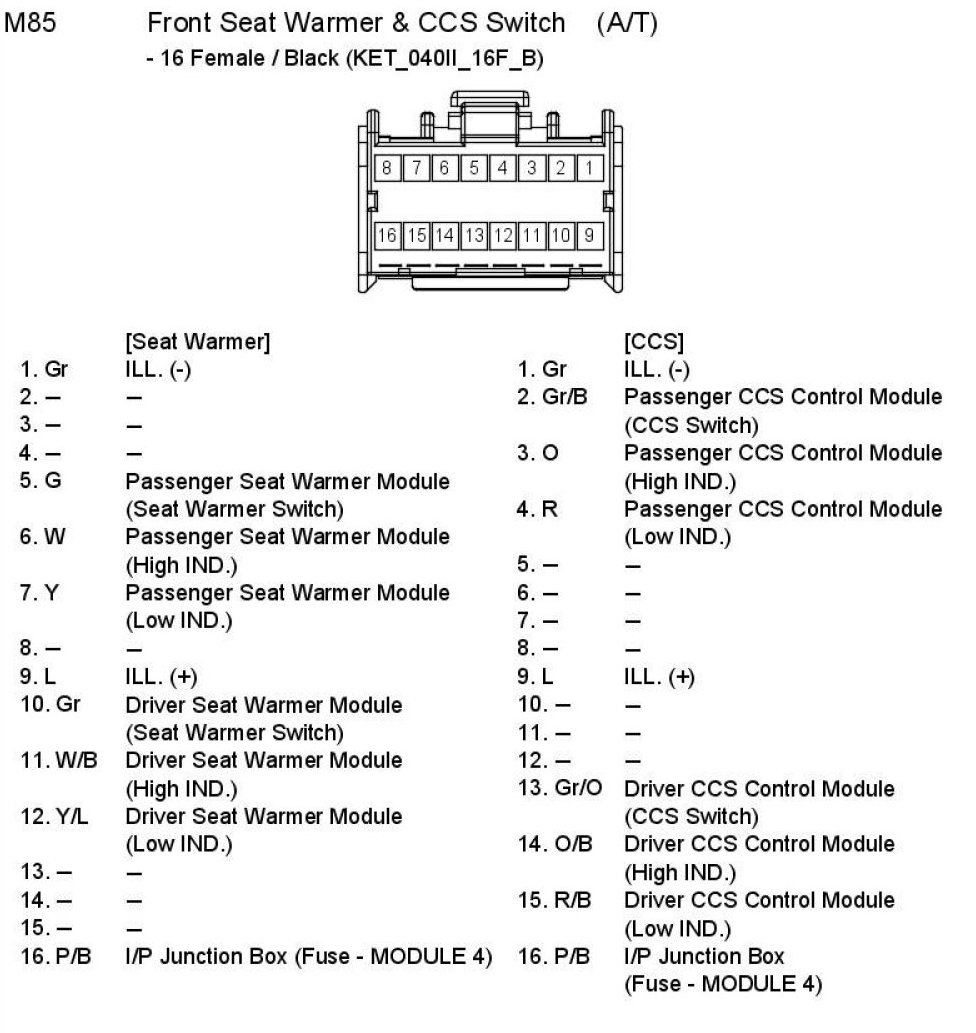 M85 Front Seat Warmer & CCS Switch (A/T):