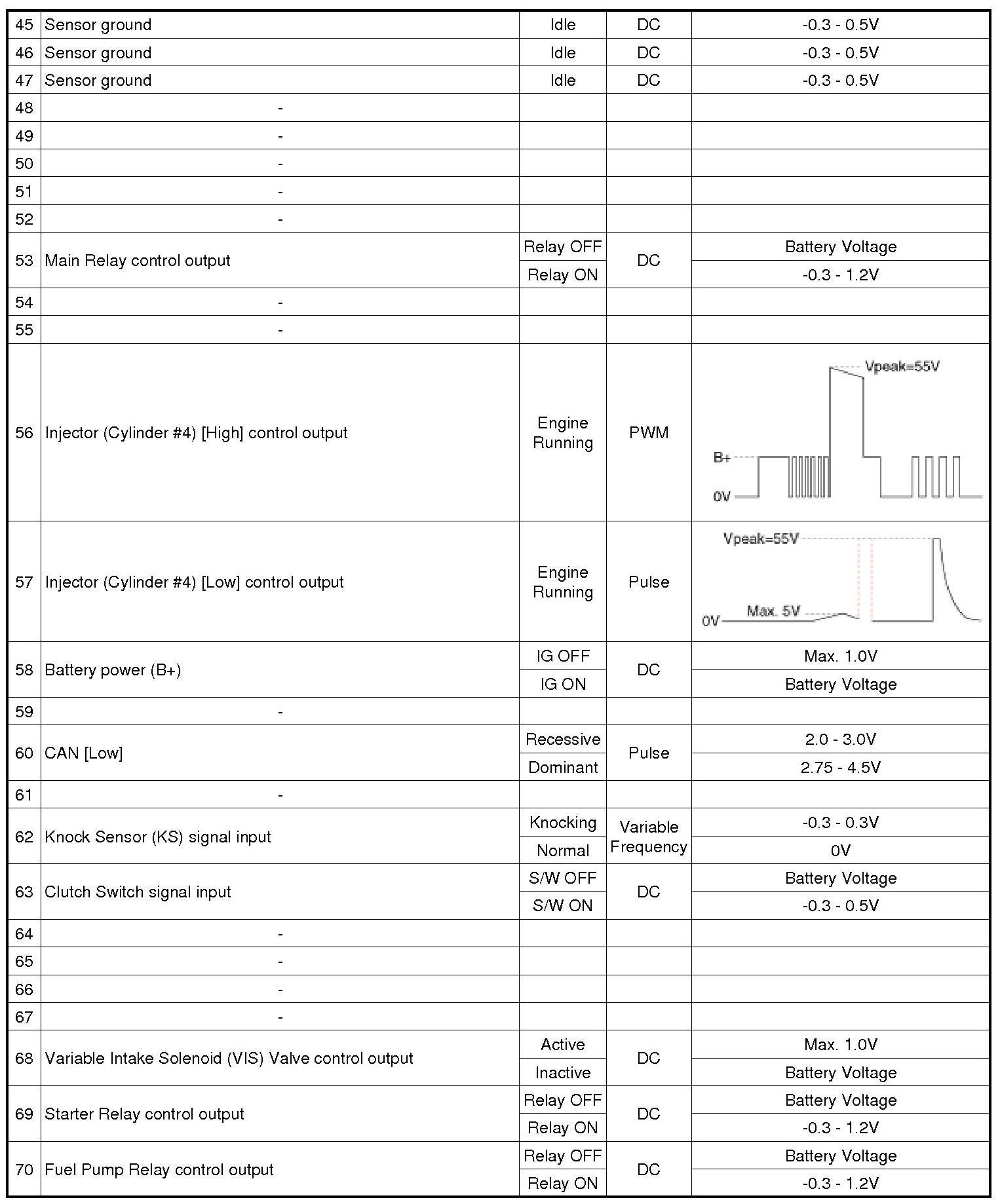 ECM Terminal And Input/Output signal