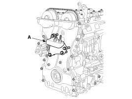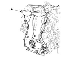 27. Remove the timing chain cover (A) by gently prying the portions between the cylinder head and cylinder block.