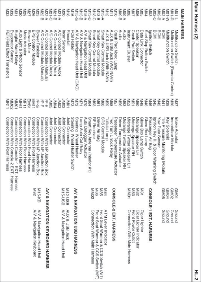 Main Harness Index: