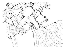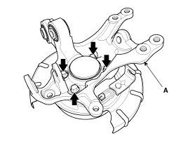 11. Loosen the hub bearing mounting, and then remove the hub bearing from knuckle (A).