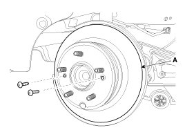 3. Loosen the mount screw and then brake disc (A).
