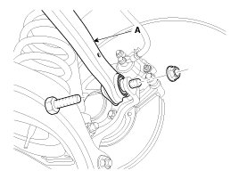 8. Loosen the trailing arm mounting bolt, and then remove the trailing arm (A).