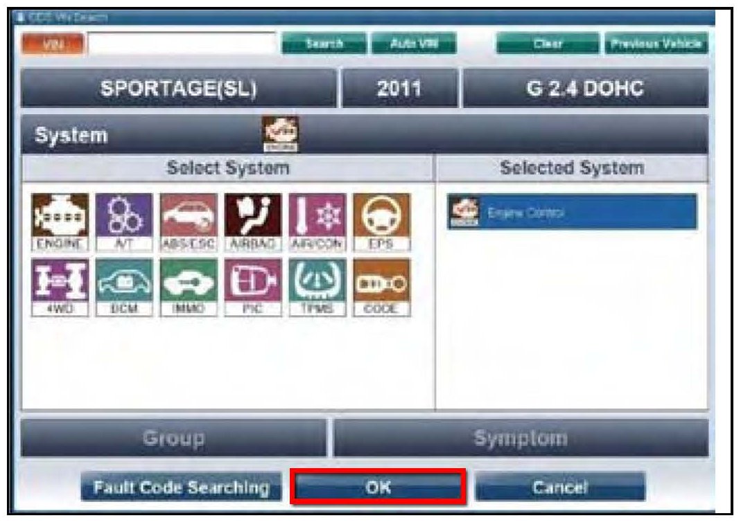 3. Choose "Engine" under "Select System". Click "OK" and follow screen instructions for connecting to vehicle.