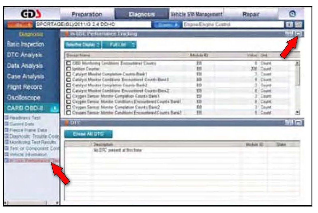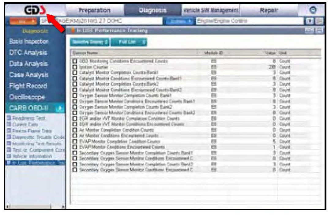 This bulletin provides information related to extracting "In use performance tracking" missions data from the engine control unit (ECU) in certain vehicles sold in California. The California Air Resource Board (GARB) requires this emissions data to be extracted from the ECUs of a number of customer owned 2011 model year vehicles with a minimum of 3000 accumulated miles without reprogramming or resetting. To facilitate collection of this data at the dealer level, changes to the GDS have been made so that screen shots will allow the capture of relevant parameters.