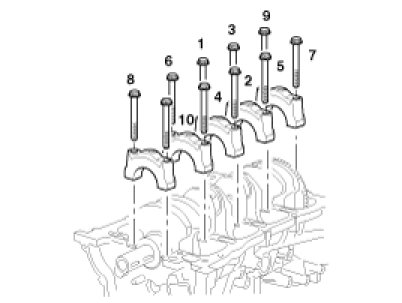 - Using the SST (09221-4A000), install and uniformly tighten the 10 bearing cap bolts, in several passes, in the sequence shown.