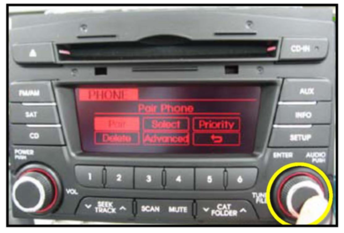 B) Using the right knob, select "Phone" and "Pair" in sequence.