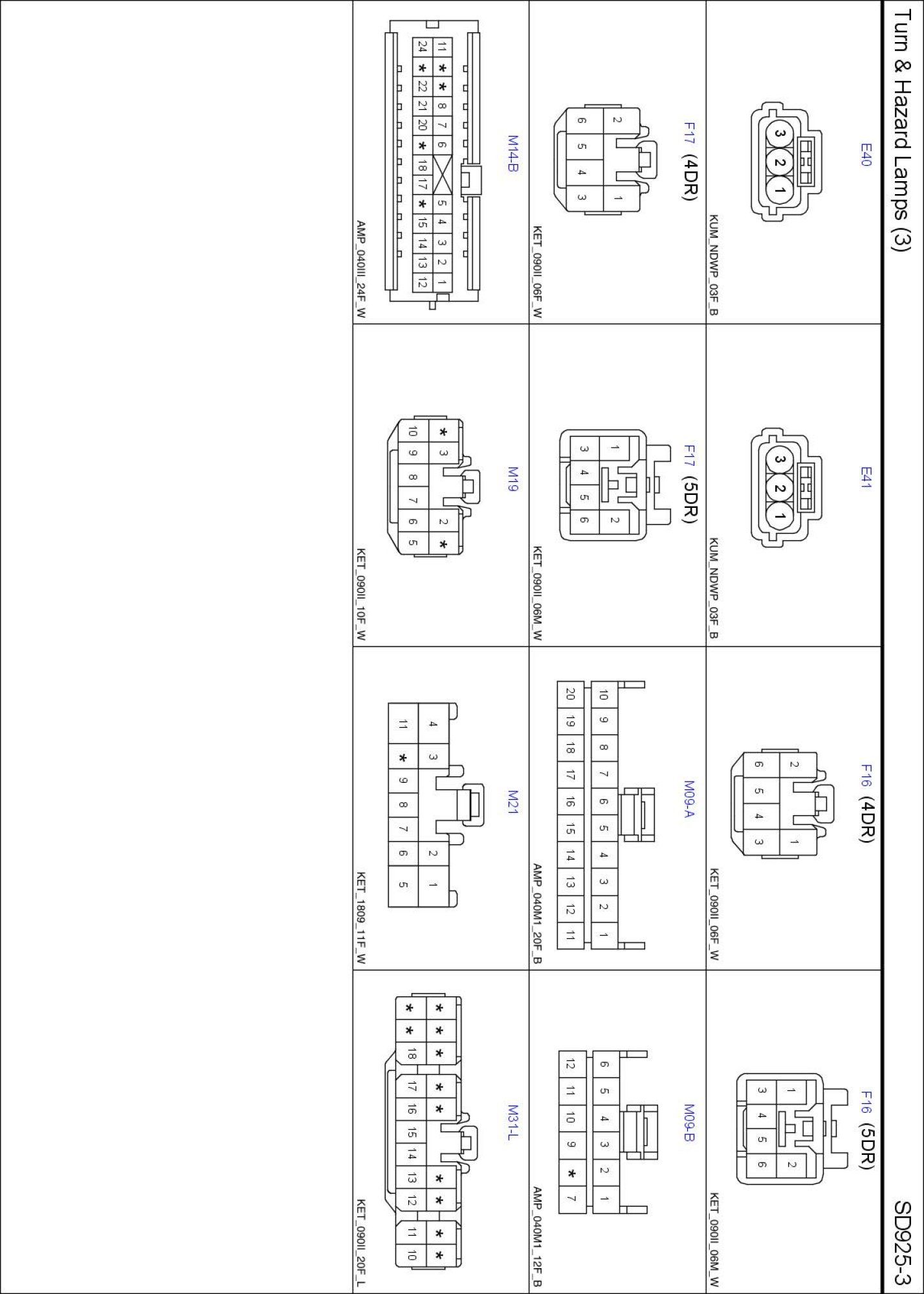 Turn And Hazard Lamps (3) Connector Pin Outs: