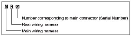 Electrical wiring connectors are classified according to the wiring parts in the Harness Layouts.