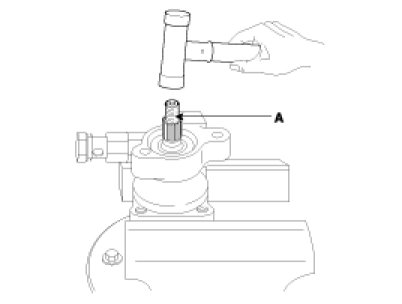 11. Tap the rotor side of the shaft slightly with a plastic hammer(A) to remove the shaft(B).