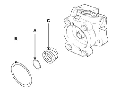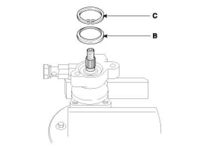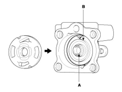 3. After inserting the shaft assembly(A) into the pump body, install the dust spacer(B) and snap ring(C).