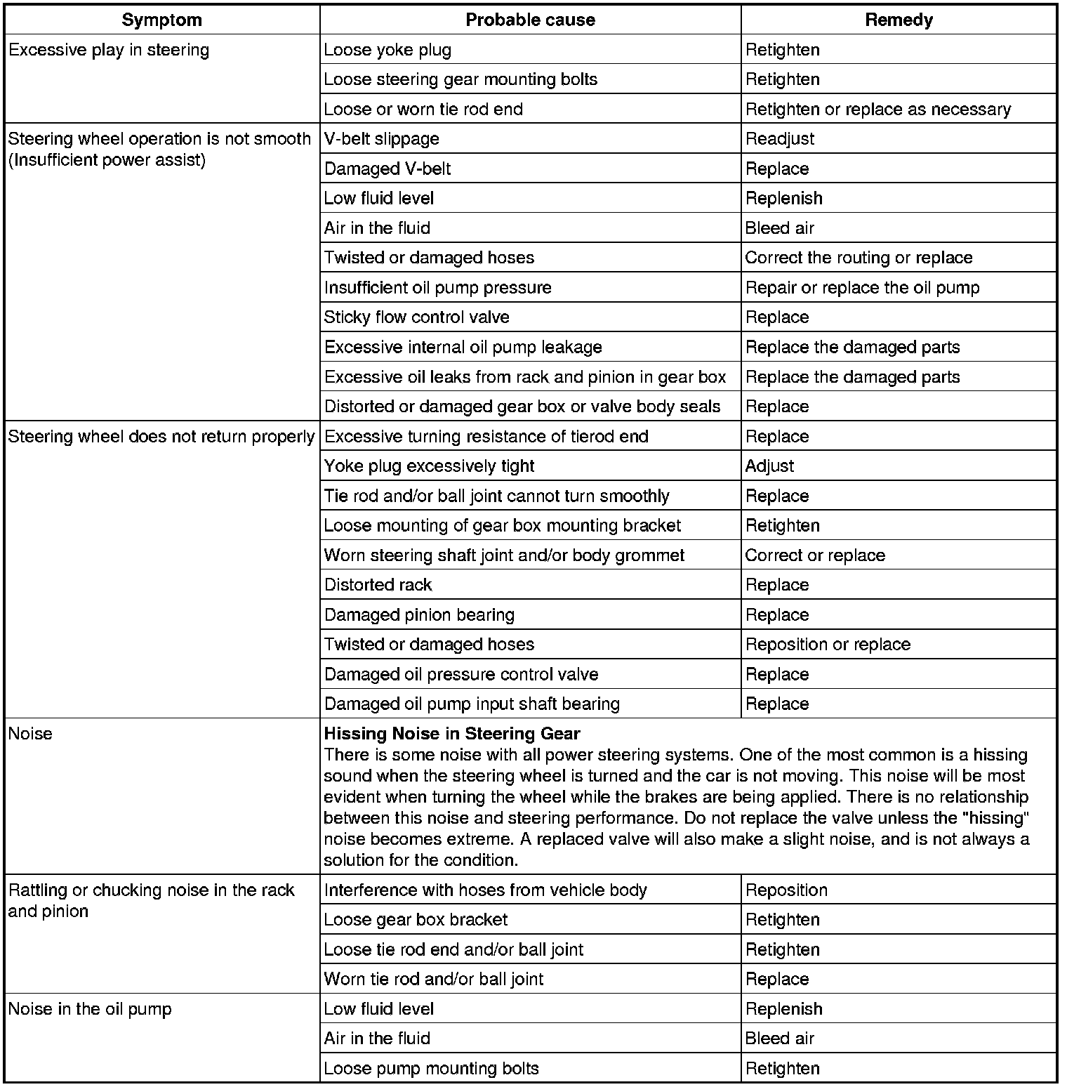 A slight "grinding noise" may be heard immediately after the engine is started in extremely cold weather conditions (below - 20°C). This is due to power steering fluid characteristics in extreme cold conditions and is not an indication of a malfunction.