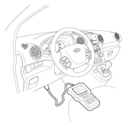 1. Connect the DLC cable of scan tool to the data link connector (16 pins) in driver side crash pad lower panel, turn the power on scan tool.