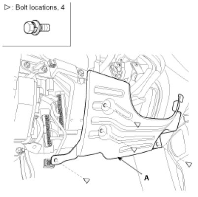 4. After loosening the mounting bolts, then remove the reinforcing panel (A).