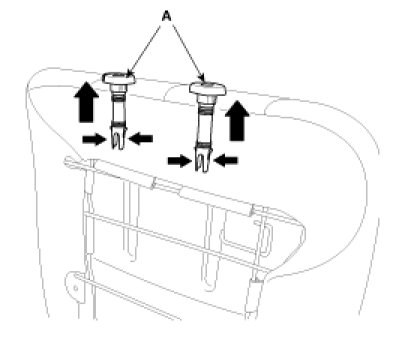 5. Pull out the headrest guides (A) while pinching the end of the guides, and remove them.