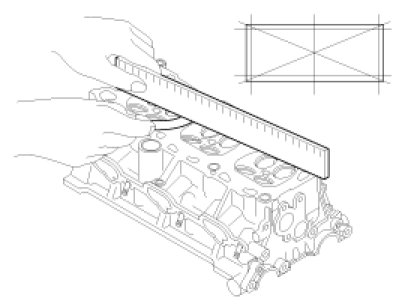 Using a precision straight edge and feeler gauge, measure the surface contacting cylinder block and the manifolds for warpage.