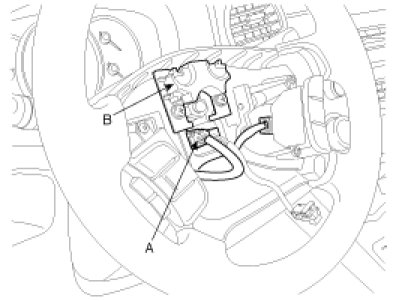 4. Disconnect the air bag and horn connector (A, B) from the air bag module and then remove the air bag module from the steering wheel.