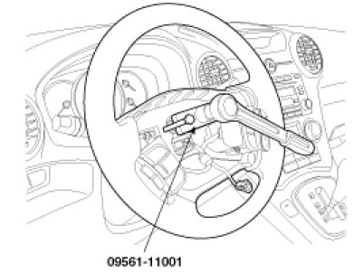 6. Loosen the lock nut and then remove the steering wheel from the steering column shaft using a SST (09561-11001).