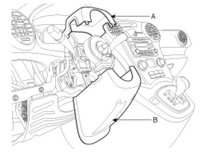 7. Install the steering column upper and lower shroud (A, B).