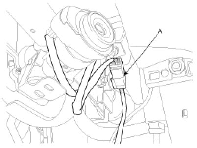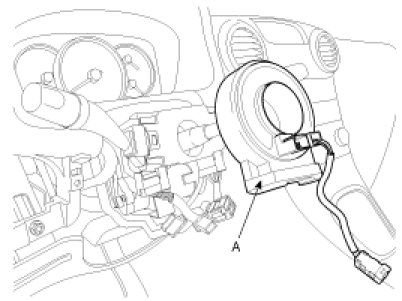 10. Disconnect the connectors from the lower portion of the clock spring and then remove the clock spring (A) from the steering column.