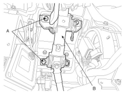 1. Install the steering column & universal joint assembly (B) by tightening the mounting bolts and nuts (A).