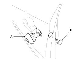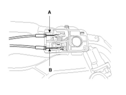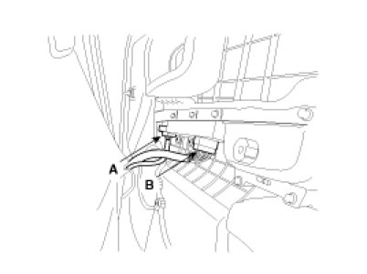 3. Disconnect the lock cable (A) and inside handle connect cable (B).
