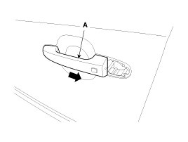 5. After loosening the mounting bolt, then remove the outside handle cover (A).